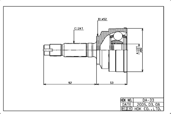 ШРУС наружный /HDK для Daihatsu Pyzar 1996-2002 /2WD; 22*52*24; DA-033; (TG-2833 TG-2833Z48 DA-033A48) DA033 DH33A48 NS31452H