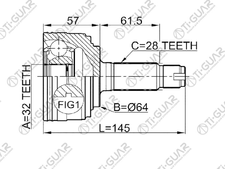 ШРУС наружный /передний левый /правый /TI-GUAR для Honda CR-V 1998-2000 Inspire UA1 UA2 1995-1998 Prelude 1996-2001; 32*64*28; TG4433; (HOE033A HO033 TG4433Z50) HO33 HO033A50