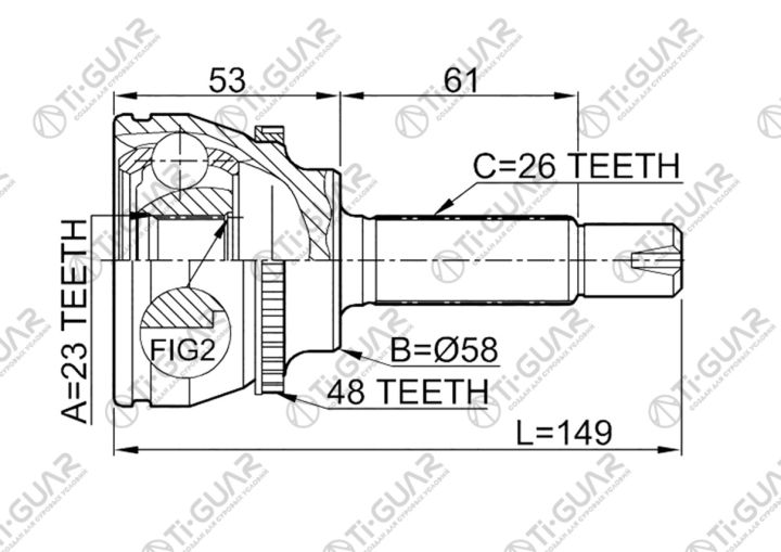 ШРУС наружный /правый /левый /TI-GUAR для Toyota Corolla 1997-2002 ZE120; 23*58*26; TG-9554Z48; (TO-E077A TO-77A48 TO54A48) 4346019795 TO054A48 0110054A48